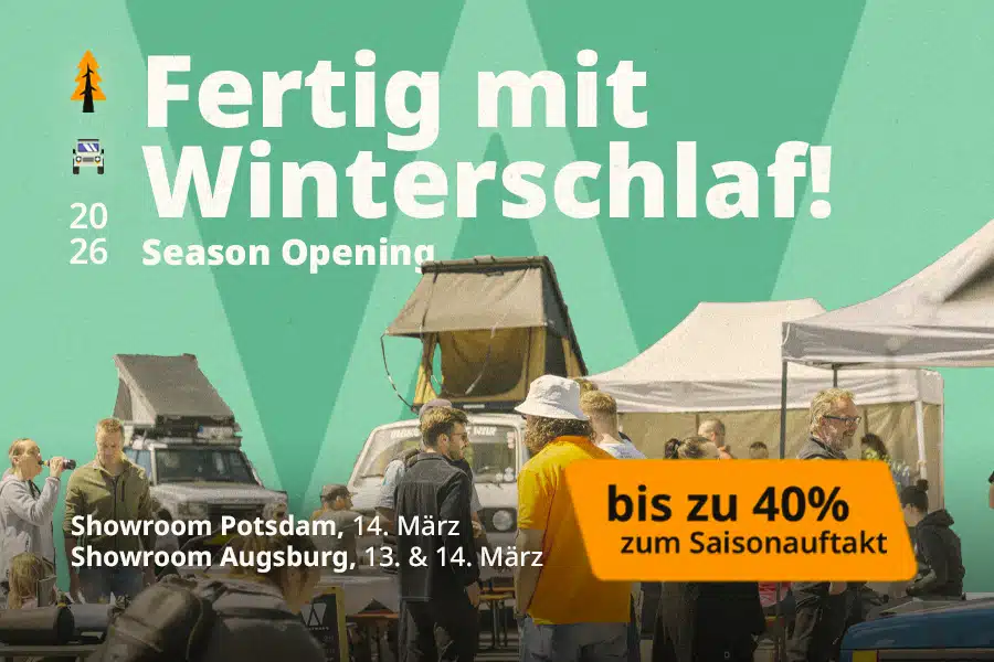 Besuche uns zur großen Saisoneröffnung im VICKYWOOD Showroom Potsdam, stöber dich durch’s Sortiment, quatsch mit uns und hol dir eine große Portion Dachzelt-Inspiration für den nächsten Urlaub ab.